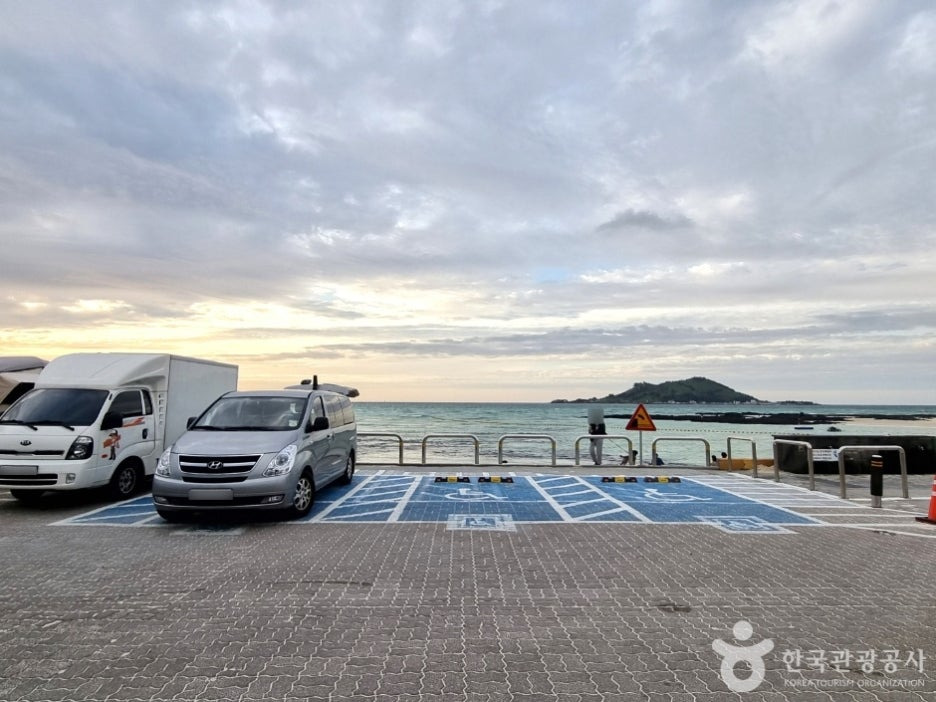 A5. 주차장은 넓게 조성되어 있으며, 약 250대까지 주차 가능합니다. 해변과 바로 연결되어 있어 짐 옮김이 편리하며, 주차비는 별도입니다.